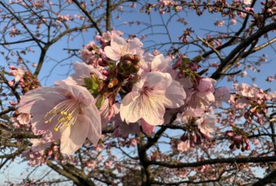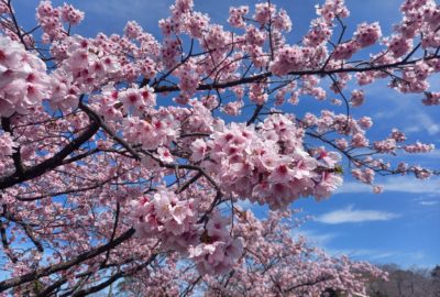 パノラマの不知火海一面が色付く夕陽と1,300本の桜並木は絶景です!