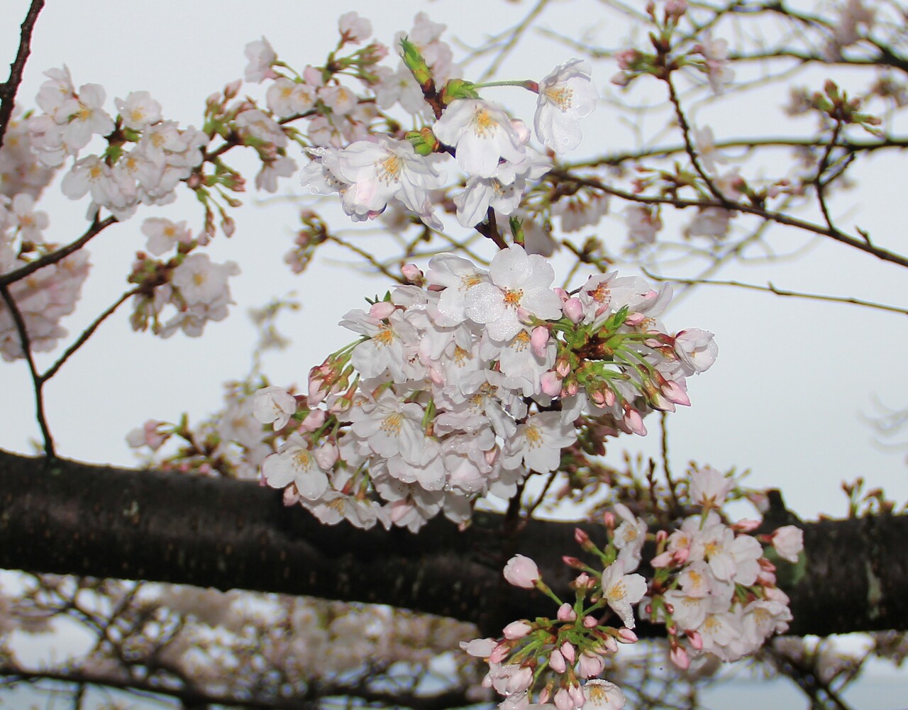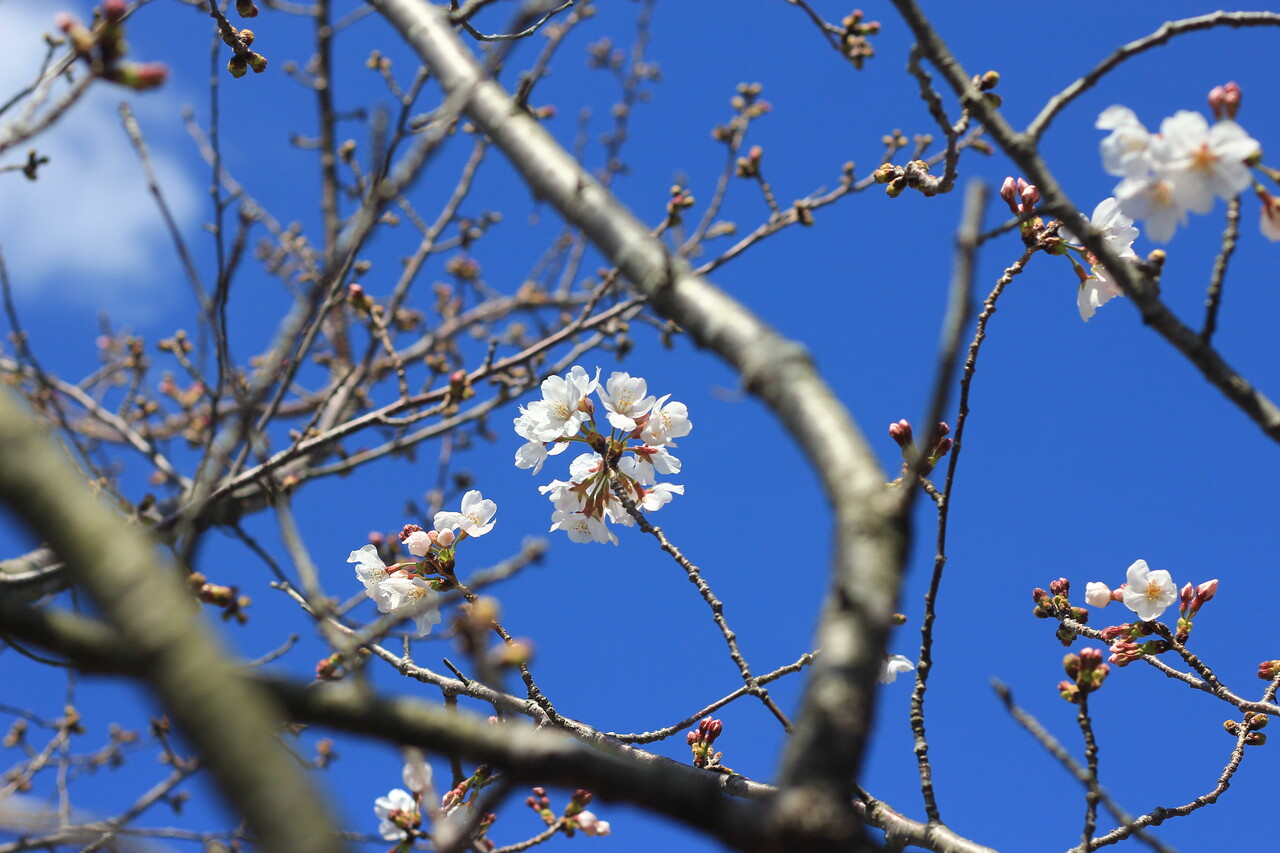 公園内の殆どのソメイヨシノに、1輪以上の開花が見られます。