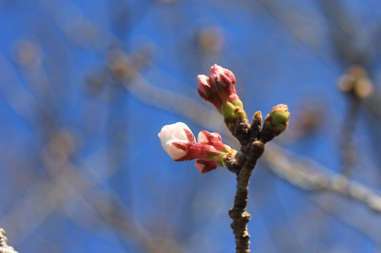 近づいてよく見ると、ソメイヨシノの蕾がほころび始めていました。