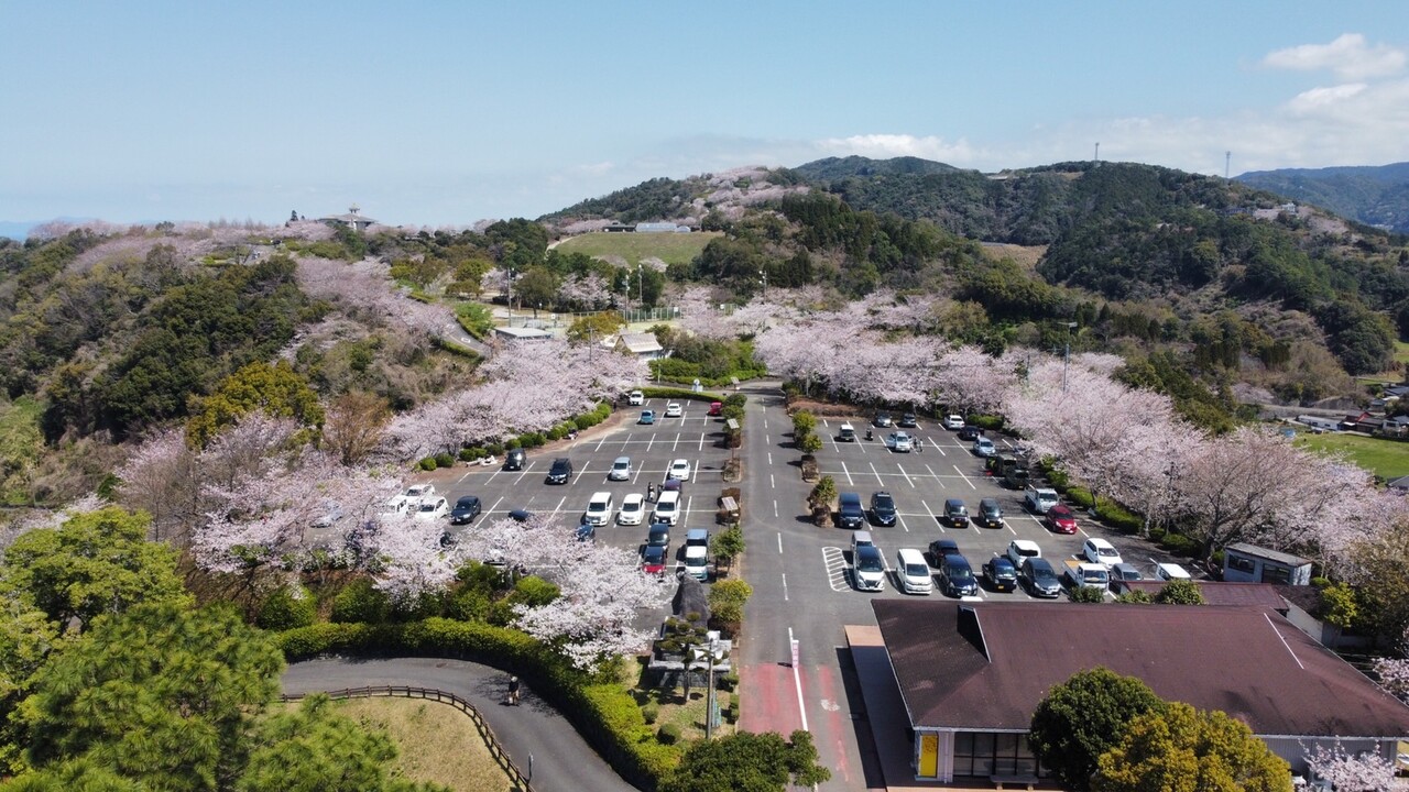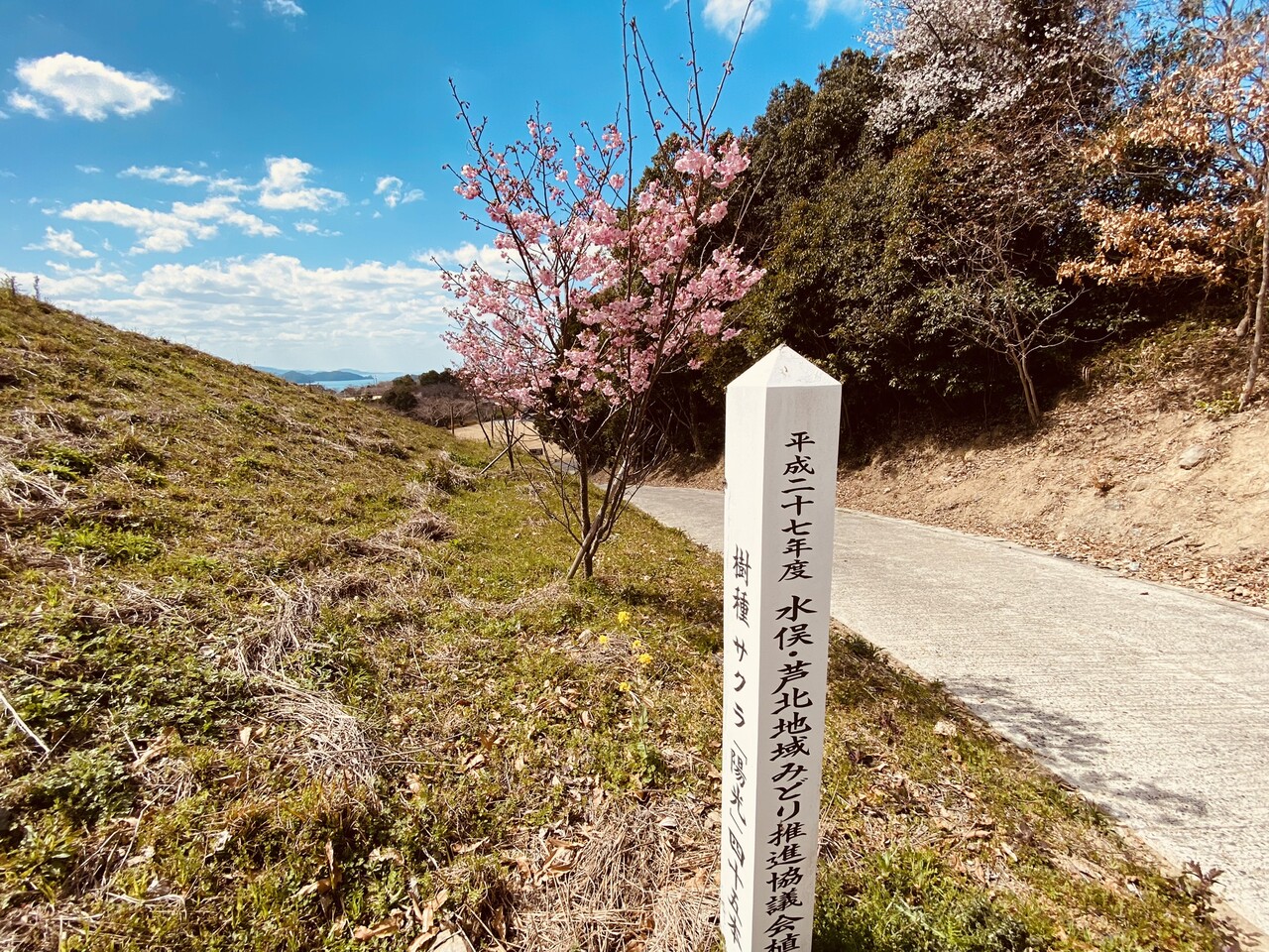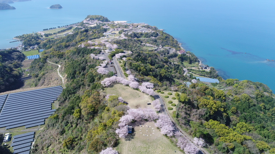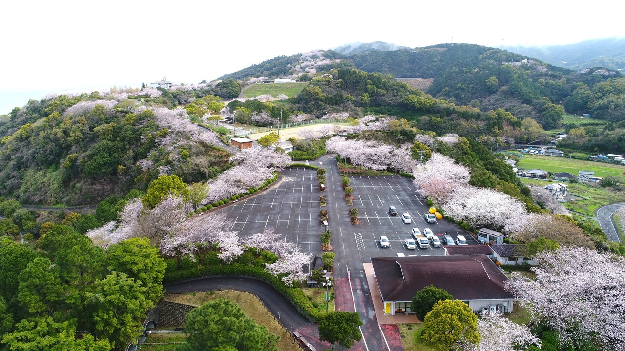 周辺の山桜は満開で、清楚な白花が海や空の青に映えます。