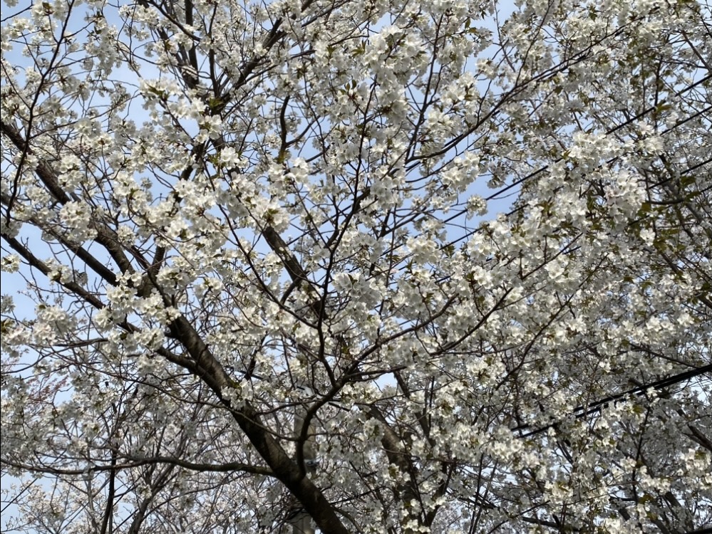 花が若干残っている樹も、風が吹くたびに桜吹雪となり散っていきます。