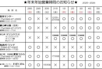 年末年始 休業・営業時間のご案内
