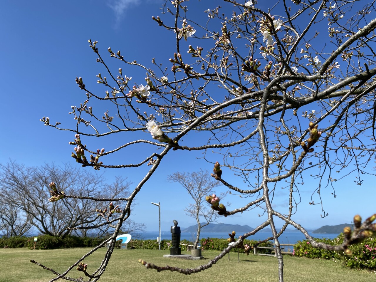 御立岬公園内の桜は未だ “蕾”です。